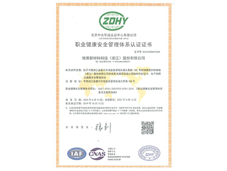 職業(yè)健康與安全管理體系認證證書