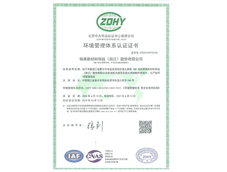 環(huán)境管理體系認證證書