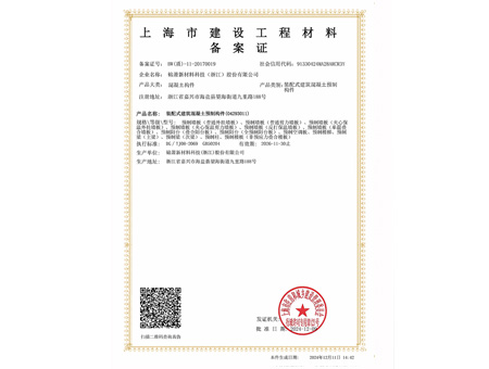 上海市建設工程材料備案證
