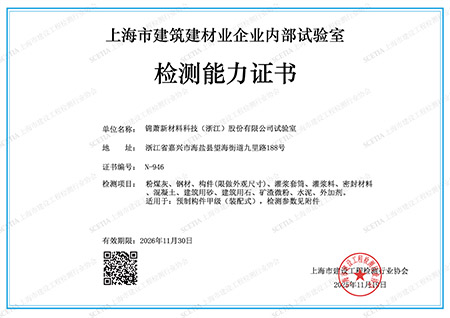 上海市建筑建材業(yè)企業(yè)內部試驗室檢測能力證書