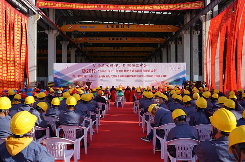 2019年11月15日上午8:28,“首屆中國長三角地區(qū)裝配式建筑職業(yè)技能邀請賽”暨“錦蕭杯”中國長三角地區(qū)裝配式混凝土預(yù)制構(gòu)件職業(yè)技能競賽-浙江分賽區(qū)預(yù)賽在錦蕭建筑科技有限公司海鹽裝配式預(yù)制構(gòu)件生產(chǎn)基地盛大開幕。