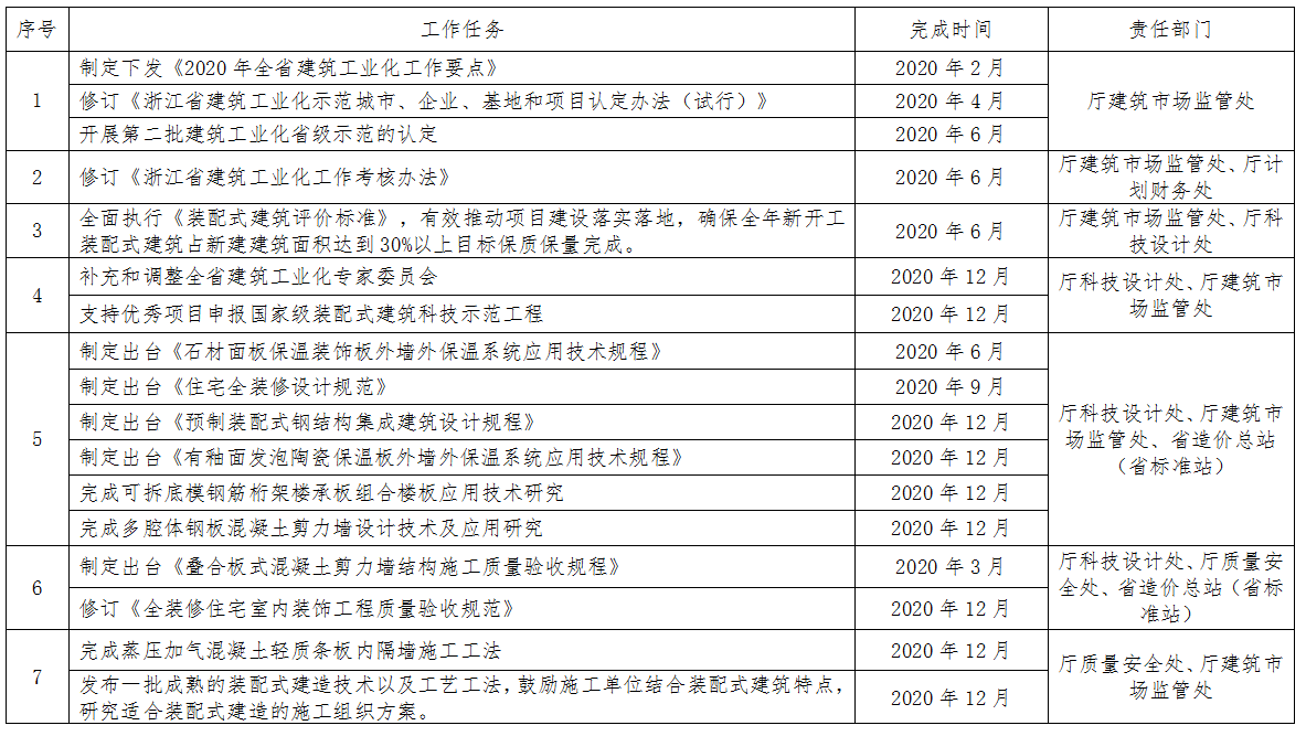 2020年全省建筑工業(yè)化工作任務分解表