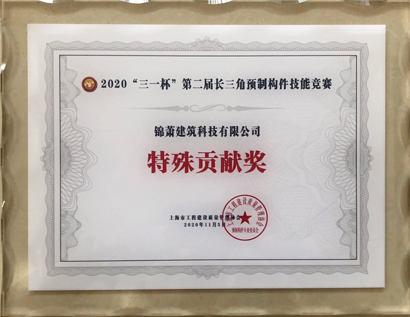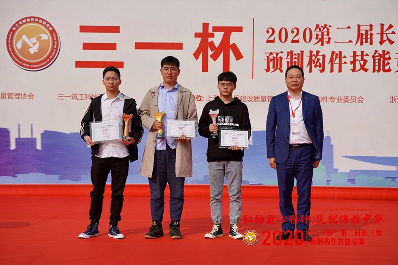 2020年11月8日下午,“三一杯”第二屆長三角裝配式預制構件職業(yè)技能競賽總決賽在浙江三一筑工科技有限公司落下帷幕,來自上海、江蘇、浙江、安徽三省一市分賽區(qū)晉級的21支參賽隊角逐本屆競賽總冠軍。經過三天緊張的理論及實操比賽,錦蕭科技參賽隊憑借優(yōu)異的表現(xiàn),勇奪大賽亞軍。