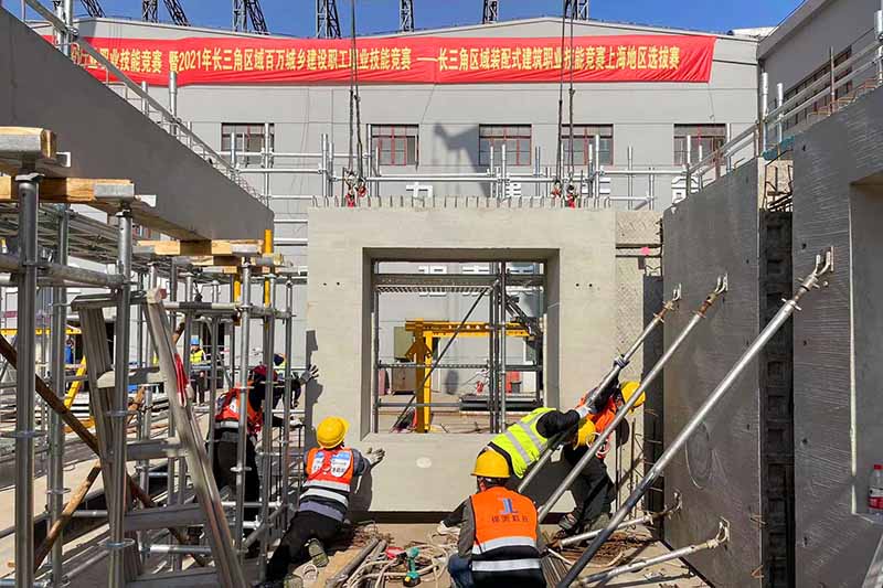 競賽是在上海市住房和城鄉(xiāng)建設(shè)管理委員會(huì)、上海市人力資源和社會(huì)保障廳、上海市總工會(huì)等政府主管部門以及長三角區(qū)域新型建筑工業(yè)化協(xié)同發(fā)展聯(lián)盟具體指導(dǎo)和支持下,由上海市建設(shè)協(xié)會(huì)、上海市建筑施工行業(yè)協(xié)會(huì)、上海市混凝土行業(yè)協(xié)會(huì)、上海市金屬結(jié)構(gòu)行業(yè)協(xié)會(huì)和上海市技師協(xié)會(huì)聯(lián)合舉辦,來自本市裝配式建筑設(shè)計(jì)、施工、生產(chǎn)等的優(yōu)秀企業(yè)中近80支參賽隊(duì)300余名選手參加了本次比賽。
