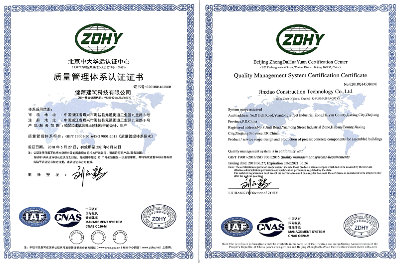 近日,錦蕭建筑科技有限公司正式通過了ISO9001:2015質(zhì)量管理體系認證,并獲得認證證書,這標志著公司在產(chǎn)品研發(fā)設(shè)計、生產(chǎn)及銷售服務方面已達到國際化標準,獲得了國際權(quán)威組織的認可。