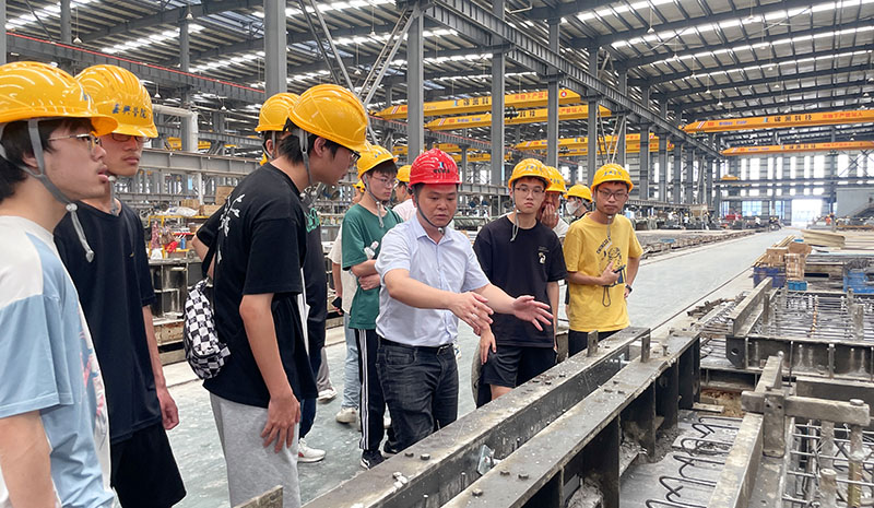 隨后,師生一行在相關(guān)負責人的陪同下實地參觀了公司生產(chǎn)車間,現(xiàn)場感受裝配式預制構(gòu)件的生產(chǎn)工藝和流程,公司技術(shù)人員對學生們提出的疑惑耐心地進行了一一解答。