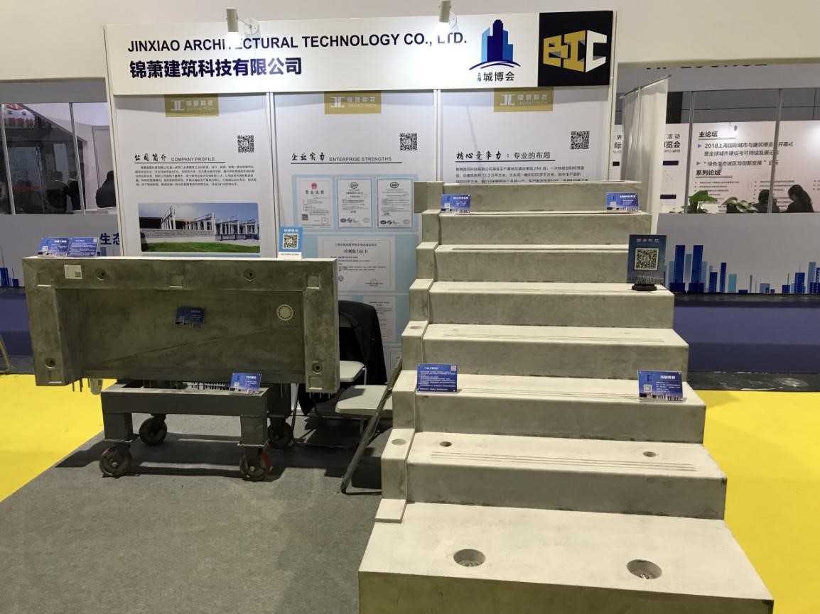 兩次展會,錦蕭科技以最強團隊陣容參與亮相。走進錦蕭展區(qū),參觀人氣爆棚,國內(nèi)外客商絡(luò)繹不絕。公司以混凝土預制構(gòu)件展品--預制樓梯、預制空調(diào)板為媒介,通過廠區(qū)沙盤展現(xiàn),背投宣傳片展映,向所有參觀的領(lǐng)導和觀眾展示了公司在裝配式建筑領(lǐng)域所擁有的技術(shù)實力及強悍的生產(chǎn)能力。