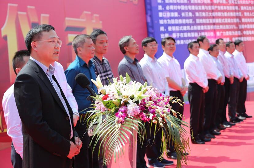 錦蕭科技董事長(zhǎng)李軍介紹投資興建"年產(chǎn)70萬(wàn)立方米建筑裝配式預(yù)制構(gòu)件生產(chǎn)建設(shè)項(xiàng)目"是積極響應(yīng)國(guó)家發(fā)展綠色建筑業(yè)的號(hào)召,項(xiàng)目總投資為8.05億元,新征建設(shè)用地152601平方米,工廠生產(chǎn)及配套用房建筑面積8.8萬(wàn)平方米,擁有10個(gè)車間,成品堆場(chǎng)面積為8.34萬(wàn)平方米,并配備運(yùn)輸碼頭一座,建成后年產(chǎn)量最大達(dá)70萬(wàn)立方米,將成為目前國(guó)內(nèi)單個(gè)最大的裝配式PC構(gòu)件生產(chǎn)基地,產(chǎn)品會(huì)覆蓋上海、蘇州、嘉興、杭州、紹興、寧波等長(zhǎng)三角地區(qū),并對(duì)前來(lái)參加奠基儀式的各位領(lǐng)導(dǎo)和各界朋友表示衷心感謝,作了歡迎詞。