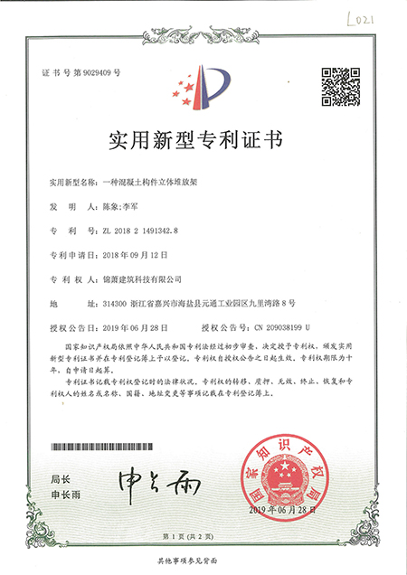 專利證書--一種混凝土構(gòu)件立體堆放架